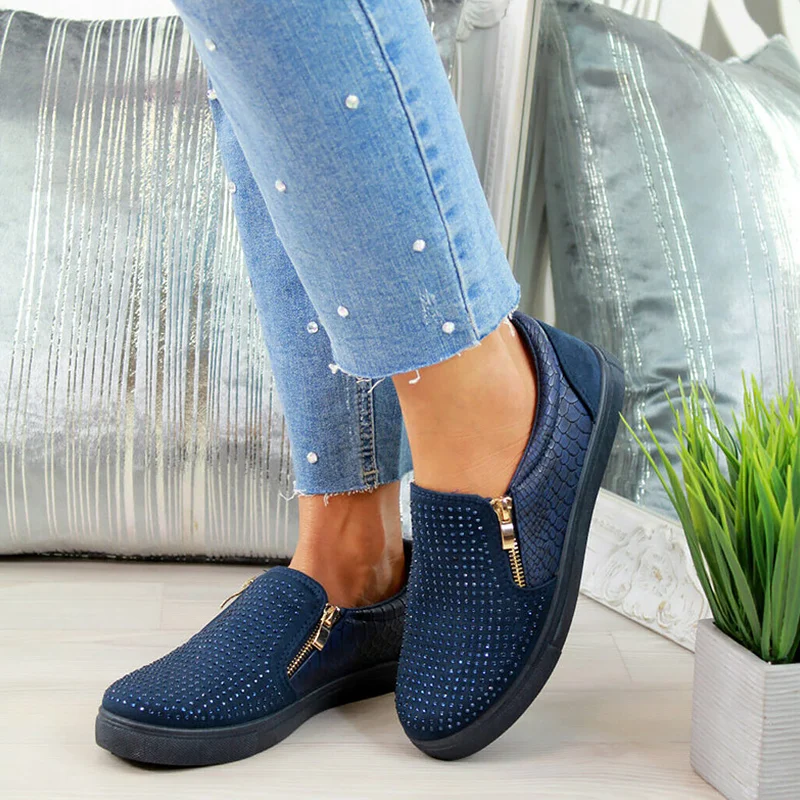 Women flats Rhinestone Zipper Snake pattern flat shoes woman Big size 43 Soft Antiskid Breathable S