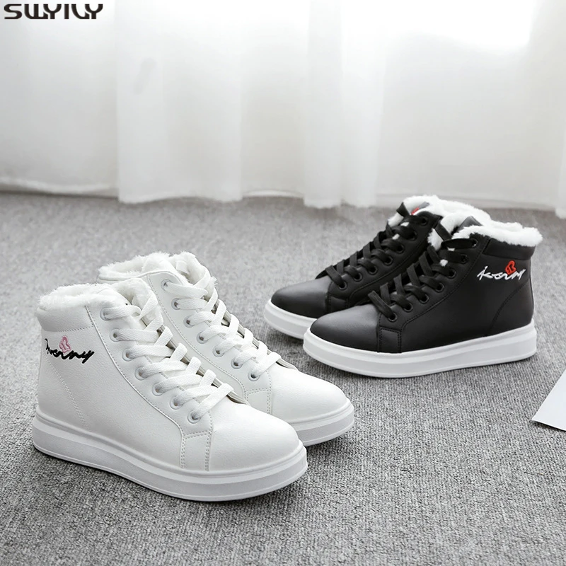 SWYIVY PU Solid Casual Shoes Women Sneakers 2019 New Winter Shoes White Sneakers For Women Short Pl